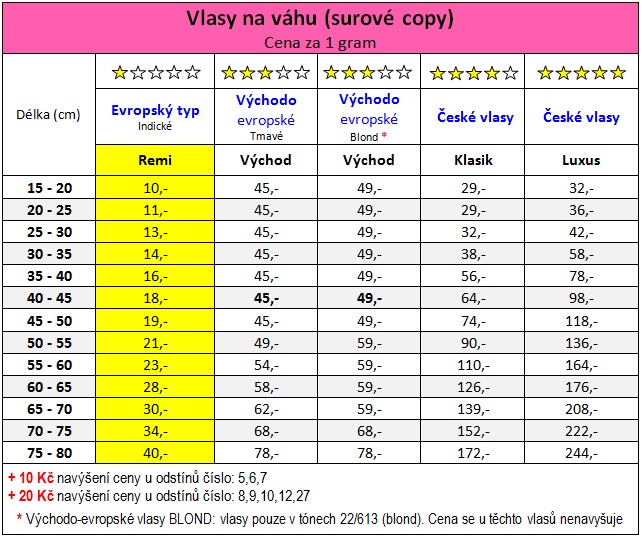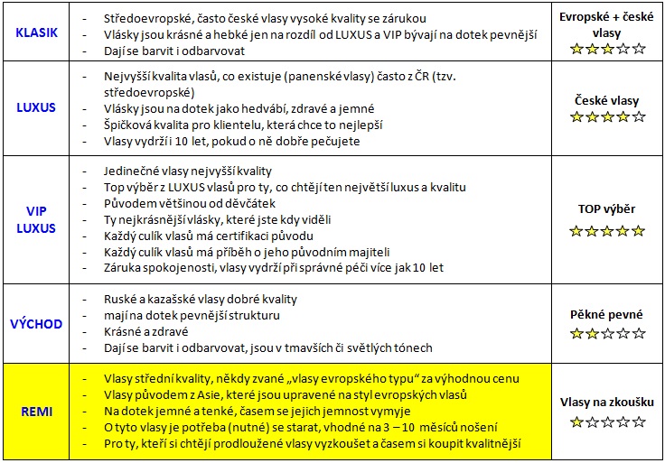 - Vlasy střední kvality, někdy zvané „vlasy evropského typu“ za výhodnou cenu